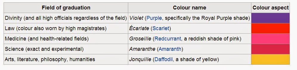 In France, academic dress, also called the toge is similar to French judges' court dress, except for its colour, which depends on the academic field in which the wearer graduated. It is nowadays little worn, except by doctors during the opening of the university year or the ceremony for a doctorate honoris causa. For doctors, it consists of: